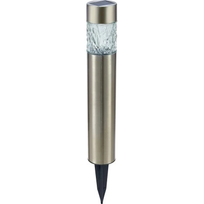 Mit dem edlen Solarspieß holen Sie sich ein dekoratives Highlight in Ihren Garten. Er begeistert in stilvoller Optik und ist in einem klassischen Silber gehalten. Gleichzeitig schafft die Spießleuchte eine angenehme Beleuchtung in Ihrem Außenbereich. Hierfür speichern die Solarzellen tagsüber die Sonnenenergie und geben diese abends als elektrischen Strom wieder ab. Gefertigt ist der Solarspieß aus rostfreiem Stahl und hochwertigem Glas. Seine Höhe misst 57 cm bei einem Ø von 5,7 cm.
