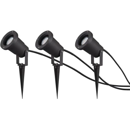 Einladend und wirkungsvoll – die Außenleuchten Urbangi setzen stimmungsvolle Lichtakzente rund ums Haus. Das dekorative 3er Set hat eine fünf Meter lange Zuleitung und jeweils drei Meter lange Kabelverbindungen zwischen den Spots. Jeder Spot verfügt über eine Erdspieß, so dass diese flexibel und problemlos in Ihrem Garten platziert werden können. Jeder Spot hat einen Durchmesser von ca. 9 cm und ist durch die Schutzart IP65 äußerst witterungsbeständig. Dank der dezenten Farbgestaltung in Anthrazit lassen sich die Außenleuchten stilvoll in verschiedene Gartenkonzepte integrieren.
