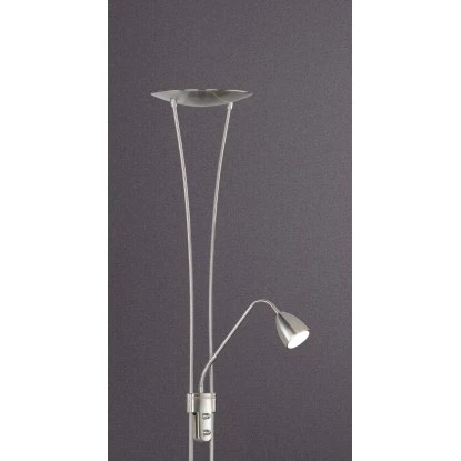 Mit dem dekorativen LED Deckenfluter setzen Sie gezielt moderne Akzente in Ihrem Zuhause. Die Leuchte in Nickel matt Ausführung mit satiniertem Glas verfügt zusätzlich über einen praktischen Lesearm, der als zweite Lichtquelle zugeschaltet werden kann. Mit einer Höhe von 180 cm passt sich die schlanke Leuchte perfekt an alle Räumlichkeiten an.