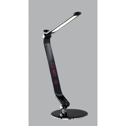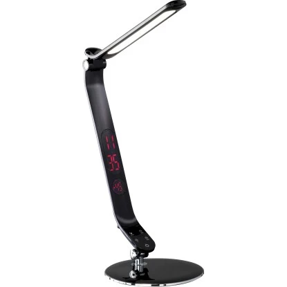 Die LED-Tischleuchte besticht durch ihr ausgefallenes Design gepaart mit hoher Funktionalität. Das schwarze Gehäuse wirkt edel und lässt die Leuchte auf beinahe jedem Schreibtisch attraktiv wirken. Mit einer Höhe von 50 cm ist die Leuchte wohl proportioniert. Die variabel einstellbare Helligkeit sorgt für maximalen Komfort. Als weiteres Highlight ist ein Timer inklusive Wecker im Korpus verbaut. Die Leuchte wird inklusive 1x 5 W fest verbauter LED geliefert.