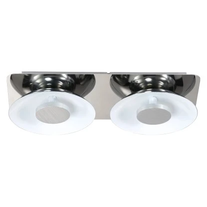 Die 2-flammige LED Deckenleuchte besticht durch formschönes Design und hohe Energieeffizienz. Die Leuchte hat eine Base in Chrom Optik und vier ausgefallenen Lampenschirmen aus satiniertem Glas und gebürstetem Aluminium. Die Kombination aus hochwertigen Materialien und moderne Formen machen diese Leuchte zu einer dekorativen Lichtquelle in Ihren Räumen.